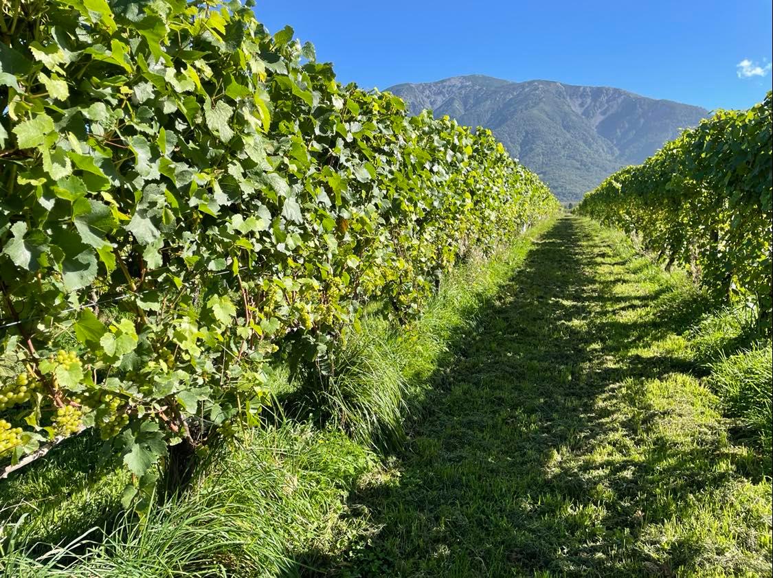Esses takes a “living soil” approach, encouraging plants to grow under the vines, whose roots then oxygenate the soil and provide cover for moisture retention.